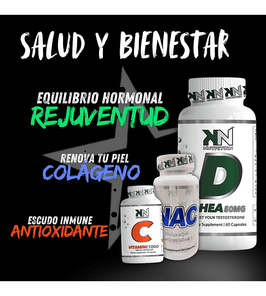 **Desintoxicación**: NAC es conocido por su capacidad para apoyar la desintoxicación del hígado y aumentar los niveles de glutatión, un antioxidante crucial en el cuerpo. Esto puede complementar los efectos de DHEA en la salud general.
